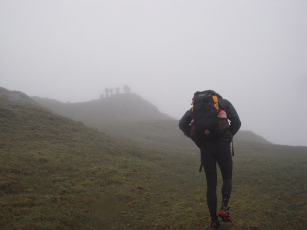 Paul Klinkert on his way up to Control number 4 on Day 2 (Benn Bhuidhe) in the fog