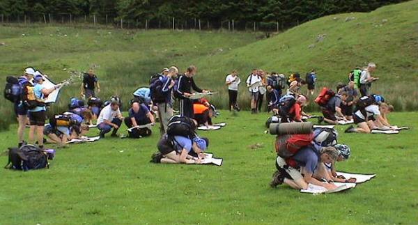 The start of Day 2 at the mid camp as teams checked out their routes before setting off
