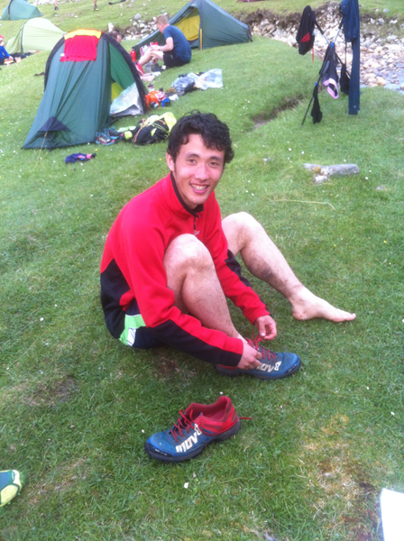 Tim Martin with the pair of shoes donated to him by Martin Stone after his fell apart on Day 1