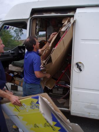 Martin (organiser) gets all the glamorous jobs - loading the road bikes at Glen Feshie